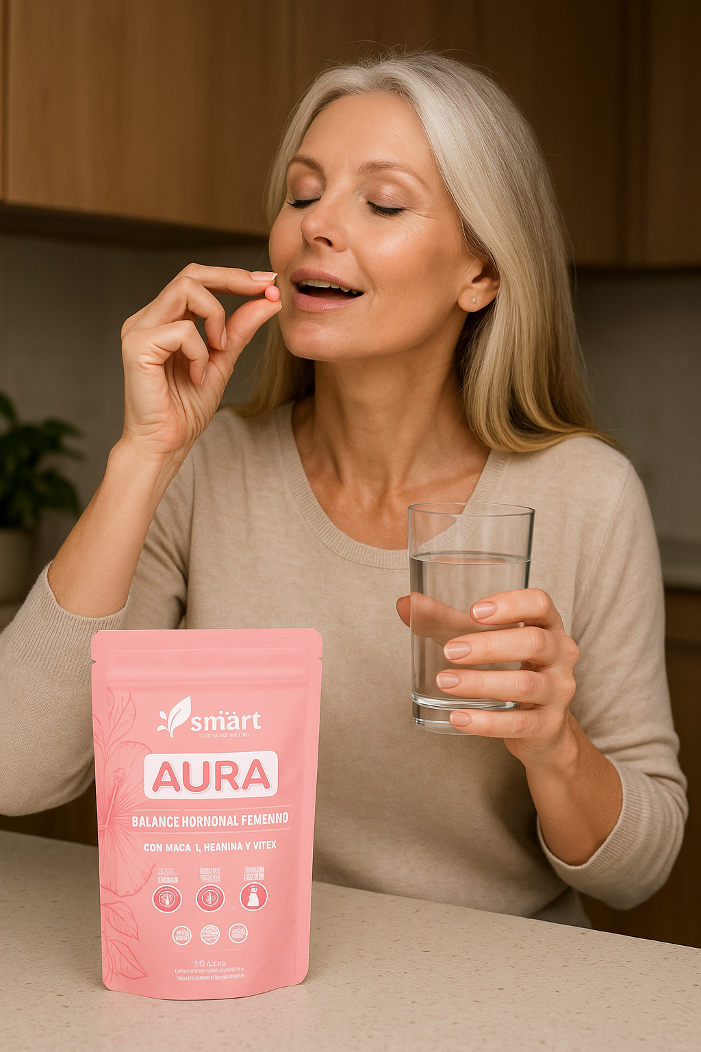 Aura es la aliada perfecta para las mujeres que buscan equilibrar su bienestar hormonal y emocional. Su fórmula combina nutrientes y adaptógenos que ayudan a estabilizar el estado de ánimo, reducir los síntomas del ciclo y mejorar la vitalidad diaria.