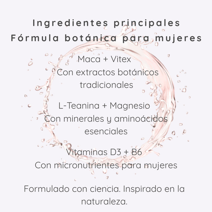 Con Maca, Vítex, Vitaminas, L-Teanina y Magnesio